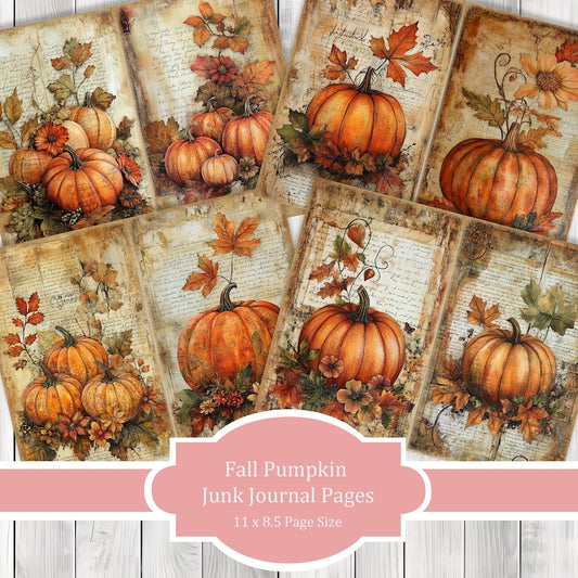 Fall Pumpkin - Journal Paper Set, Junk Journal Pages, Flower Junk Journal Paper, Printable Journal, Scrapbook Paper, Digital Paper