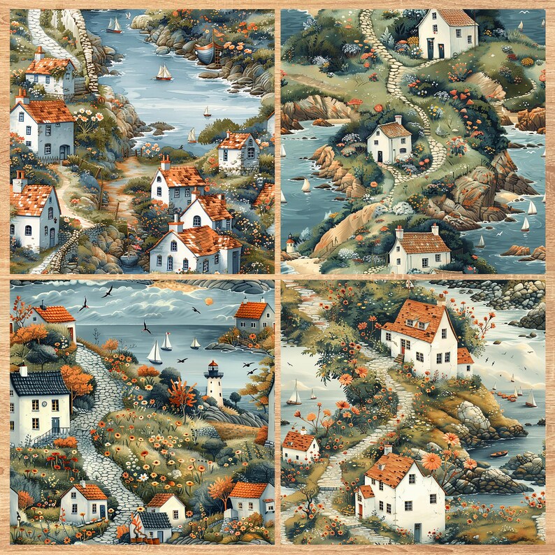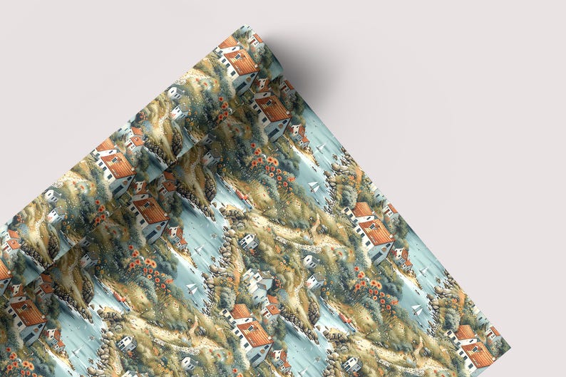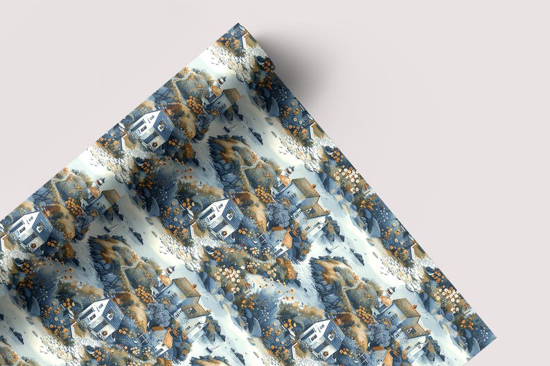 Coastal Village - Seamless Pattern - Digital Paper - Printable Journal, Scrapbook Paper, Seamless