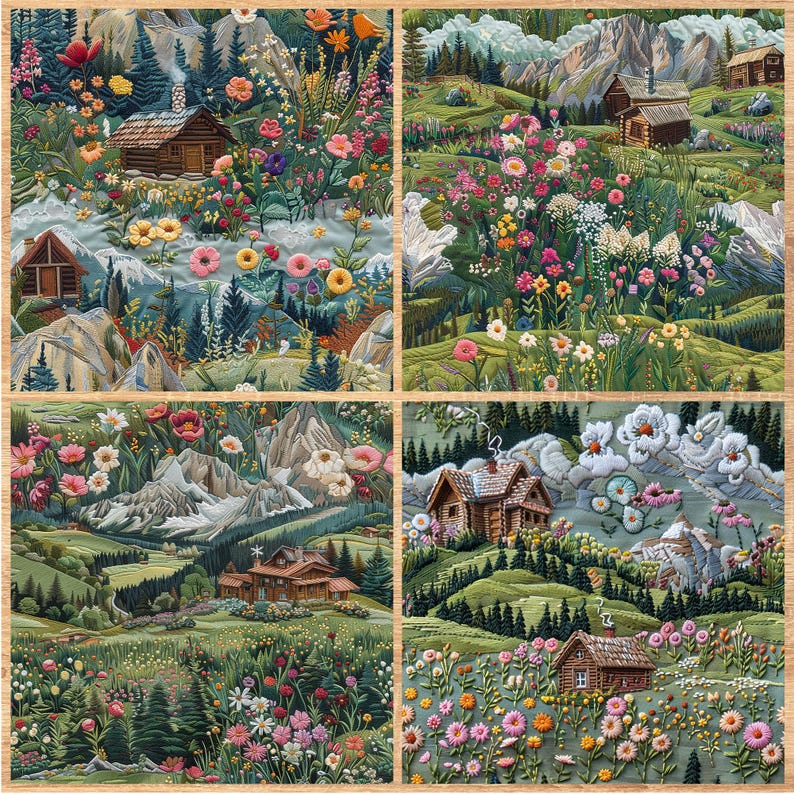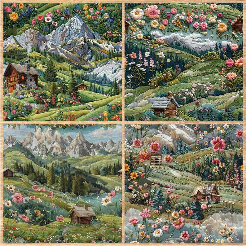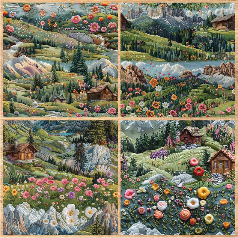 Embroidered Meadow - Seamless Pattern - Digital Paper - Printable Journal, Scrapbook Paper, Seamless