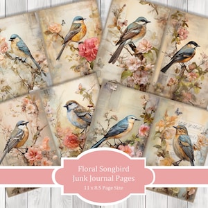 Floral Bird - Junk Journal Pages, Journal Paper Set, Bird Junk Journal Paper, Printable Journal, Scrapbook Paper, Digital Paper