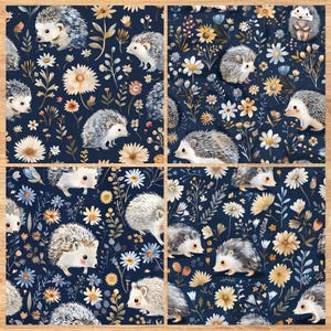 Floral Hedgehogs - Seamless Pattern - Digital Paper - Printable Journal, Scrapbook Paper, Seamless