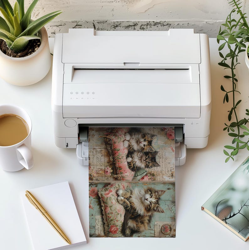 Shabby Chic Cats - Journal Paper Set, Junk Journal Pages, Flower, Journal Paper, Printable Journal, Scrapbook Paper, Digital Paper