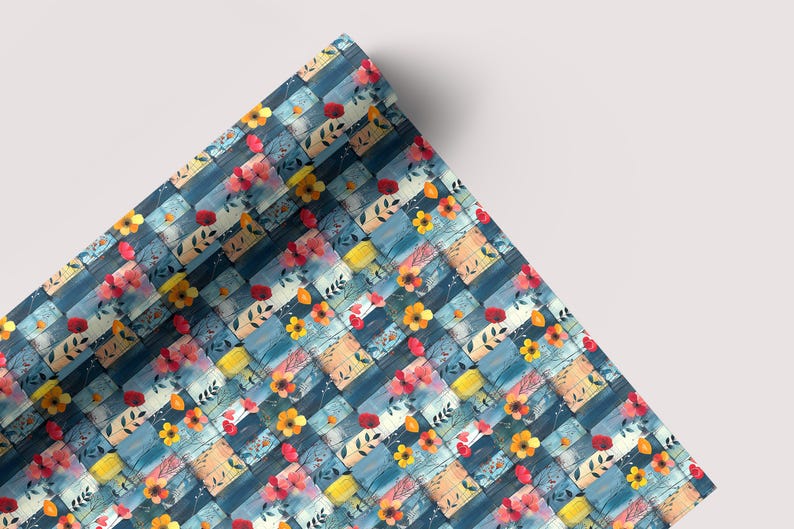 Wildflower Patchwork - Seamless Pattern - Digital Paper - Printable Journal, Scrapbook Paper, Seamless